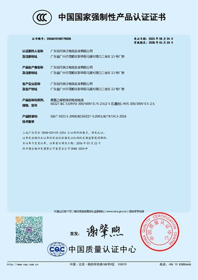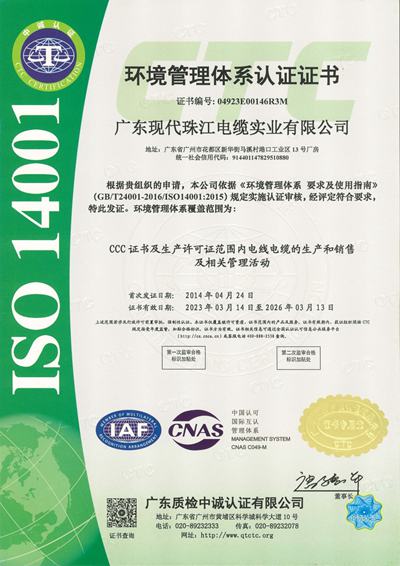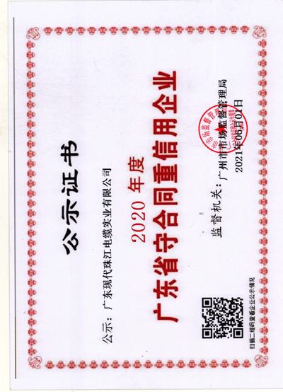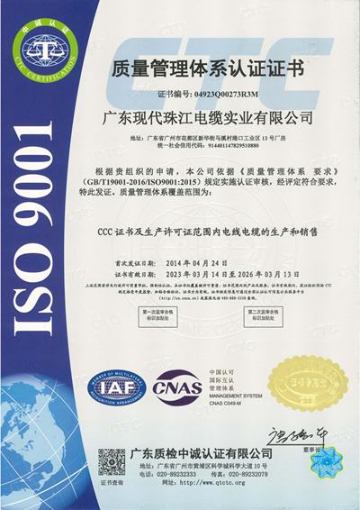 广东现代珠江电缆实业有限公司位于广州花都区,是专业生产电线、电缆及各类通讯、网络用线材的大型现代化企业。公司占地面积15000平方米,拥有雄厚的技术力量、国内先进的现代化生产设备和精密的检测仪器,管理严谨科学,质量体系健全可靠,通过ISO9001:2000国际质量管理体系认证、国家CCC认证,产品严格按照GB和JB标准进行生产。多年来,公司产品在国家、省、市各级质量抽检中全部合格,所有产品均由中国人民保险公司承保。